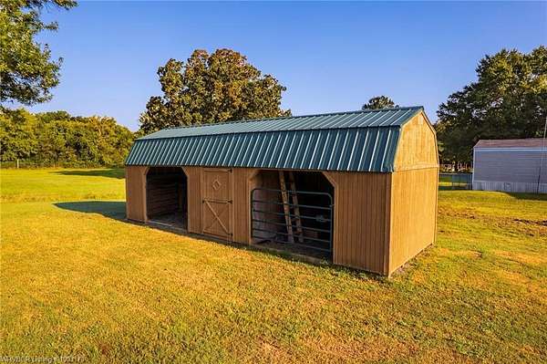 Explore this exceptional two-bedroom, one-bathroom rural property, complete with a two-stall horse barn, comprehensive fencing, and primed for your next farm life adventure. This remarkably well-maintained home is a mere five years old. The property features a circular drive, affording ample parking opportunities, and a single-car carport to shield your vehicle from the elements. Additional 2.5 acres available across the street. Although professional interior photos are pending, the available exterior photos showcase the property's outstanding condition.