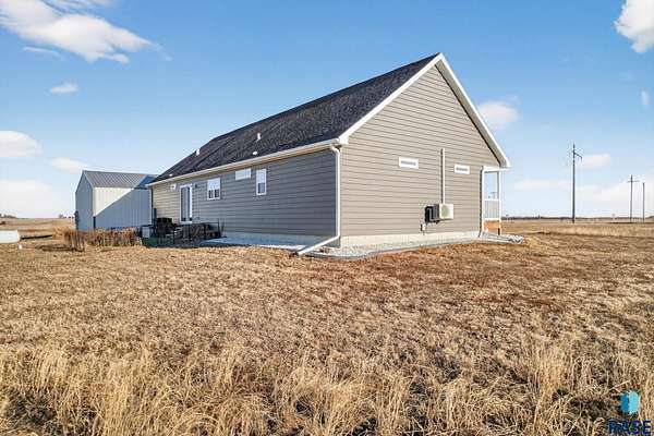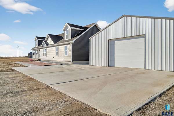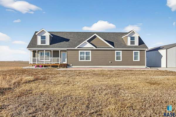 Experience peaceful acreage living just 20 minutes from Sioux Falls on this beautifully situated 7-acre property. Built in 2022, the home delivers a clean, modern aesthetic paired with practical everyday comfort. A fully paved asphalt road provides easy, year-round access. Inside, the open main living area centers around a well-designed kitchen with a generous island, stylish finishes, and plenty of room to cook and gather. The floor plan offers five bedrooms and two bathrooms, including a spacious primary suite with a large walk-in closet and a private bath featuring double vanities and elevated details. Outside, the land is open and usable-ideal for hobby farming, horses, or simply enjoying the space and fresh air. A 30x40 outbuilding with concrete floors adds versatility for storage, projects, or future dreams. If you've been waiting for a property that gives you space, freedom, and modern living without sacrificing convenience, this is it.