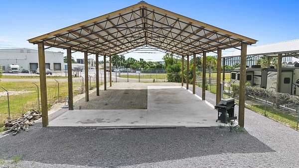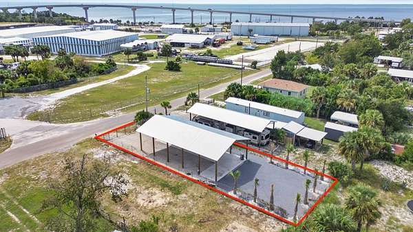 Check out this fully fenced in full-time approved RV lot! The existing pole barn is 32 x60ft. Additionally, the 6 inch thick concrete slab serves as a clean outdoor living area. The reminder of the lot features dolomite and rock for easy upkeep. Palm trees have been planted and there is additional space for a potential pool. This is mixed use lot near the Highland View boat ramp for quick and easy access to gulf, bay, and intracoastal waterway. This was built to fit any size RV, the eves are 14ft. Need extra room for your boat? There is a marina right across the street from this property. The lot is an X-Flood Zone. Easily walk down to shallow beach with beautiful palm trees or drive your permitted vehicle, as this area allows access to the beach with your vehicle.