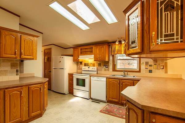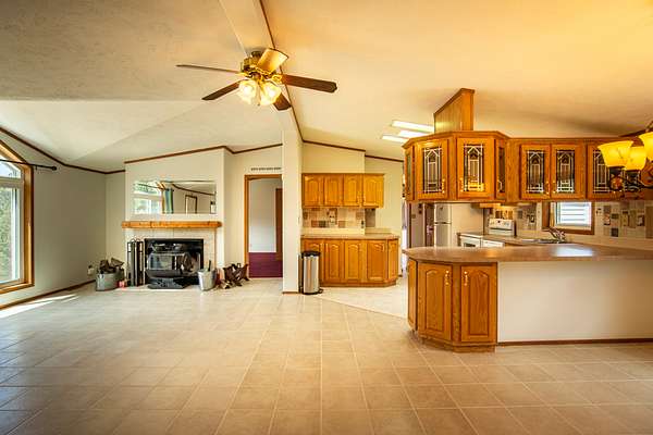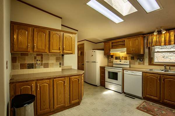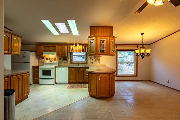 The home boasts new tile flooring in the kitchen, living room, and dining room, creating a bright and inviting atmosphere. Admire breathtaking views of the mountains and surrounding landscape from the comfort of your living space. Two bedrooms and two bathrooms on the main floor provide ample living space, while the basement offers a large room with a closet, direct access to the oversized two-car garage, and an outside entrance.