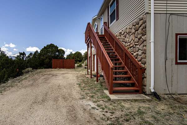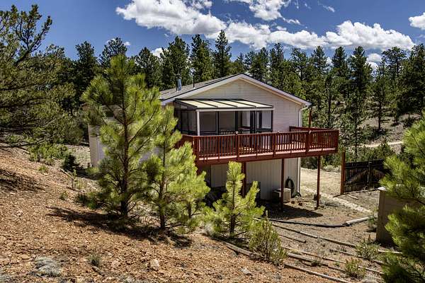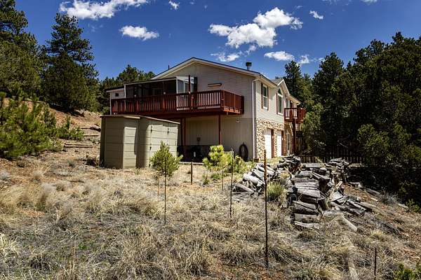 Discover the natural beauty surrounding Arapahoe Trail, with large rock outcroppings and stunning views of the Sangre de Cristo Mountain Range. The mostly wooded lot features sloping terrain and a picturesque wagon wheel bridge that provides access to the home from the main road. Whether you're looking for a full-time residence or a part-time retreat, this property offers the perfect escape from the pressures of everyday life. Don't miss the opportunity to make Wagon Wheel Crossing your slice of paradise.