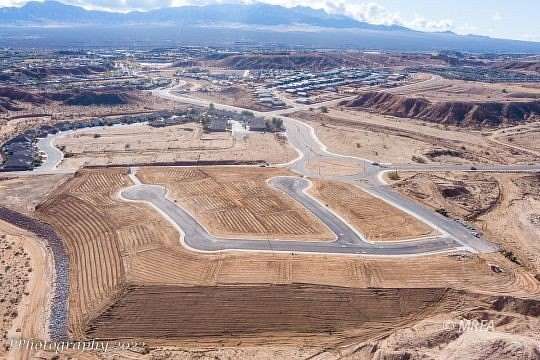 This quarter acre lot is located in the exclusive, Mohave Ridge subdivision North of I-15. This home site has unobstructed mountain and desert bluff views. Mohave Ridge is a 19 home community positioned high above Mesquite and surrounded by natural desert beauty. Adjacent to the Lincoln County boarder, this brand-new subdivision offers wide open spaces, gorgeous mountain views and direct access to miles and miles of trails. At Mohave Ridge you are sure to find stunning scenery, spacious home sites, beautifully landscaped common areas and a community dedicated to timeless designs, traditional craftsmanship with a modern flair and exceptional construction quality. View Point Contractors offers 2 x 6 exterior framed walls, R-50 attic insulation, paver exterior surfaces, epoxy coated garage floors and exceptional interior finishes. The minimum square footage on perimeter home sites is 2,300 and the minimum square footage for interior home sites is 2,100. All homes must have at least a 3-car garage. Vertical construction must start within 6 months of closing on the lot. Owner/agent.