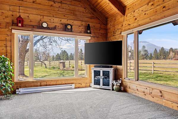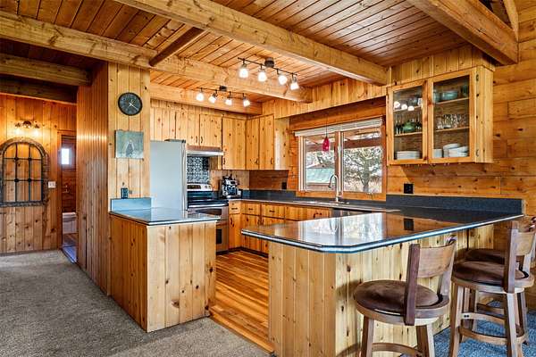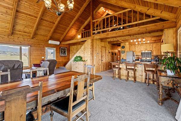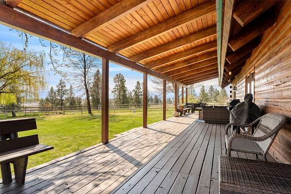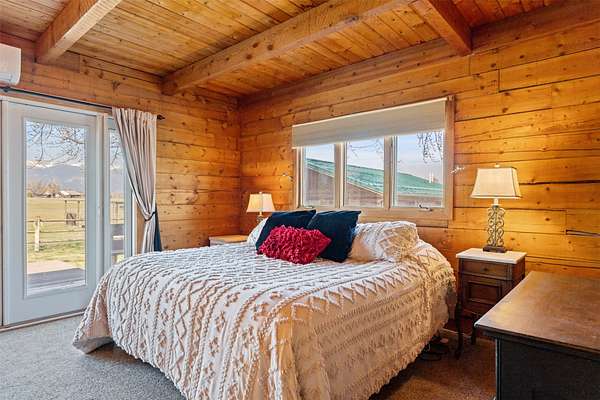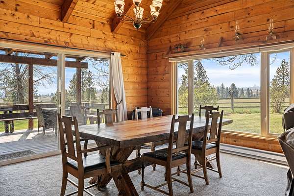 This beautifully updated 3 bedrooms, 3 bathrooms, 2484 SF log home in Victor delivers the full Bitterroot Valley horse property lifestyle on 10 level acres. Fully move-in ready, the main level features a spacious primary suite along with a conveniently located laundry/utility room. Extensive updates give the home a fresh, modern feel while preserving its rustic character, including all new downstairs flooring, three completely remodeled bathrooms, and fresh exterior stain and paint. The main residence log cabin includes 2 bedrooms and 2 bathrooms, with a loft that provides additional space for guests or a cozy retreat. A separate guest space just off the garage offers incredible flexibility. Ideal for a private home office, guest quarters, man cave, she shed, multigenerational living, or potential rental income, this space adds real versatility. The third bathroom is located in the garage, which is already plumbed for a sink and ready for a future kitchenette, or bring your RV and take advantage of the existing hookups, offering endless possibilities for added functionality and customization. The open-concept living, dining, and kitchen area is the centerpiece of the home, framed by dramatic 20 foot wood ceilings and classic D-log construction. Oversized picture windows capture sweeping views in every direction, with the Bitterroot Mountains to the west, the Sapphire range to the east, and expansive valley views to the south. The kitchen flows seamlessly into the main living spaces and features Hi-Macs solid surface countertops, stainless steel appliances, and direct access to the wraparound deck, creating an effortless setting for entertaining and everyday living. Outdoor living here stands out. Enjoy sunsets, wildlife, and even Northern Lights from the hot tub. The fully deer-fenced garden is well established and highly productive, with apple and cherry trees, multiple berry varieties, rhubarb, and dedicated herb beds. Water access is thoughtfully designed throughout, including a frost-free faucet, while flood irrigation from Fred Burr Creek and underground systems keep the grounds green and functional. For recreation, the Fred Burr Creek Trailhead is directly accessible from the property, opening the door to immediate trail riding, hiking, and backcountry access. This location offers quick access to both Victor and Hamilton, along with the Bitterroot River and many opportunities for fly fishing, hunting, and outdoor adventure. This is a rare opportunity to own a property that combines privacy, functionality, and sweeping Montana beauty with room to live, work, and play.