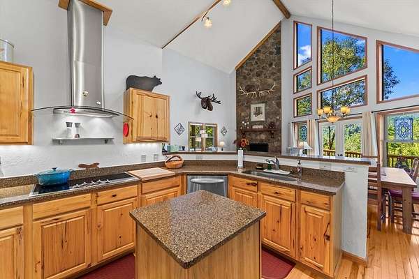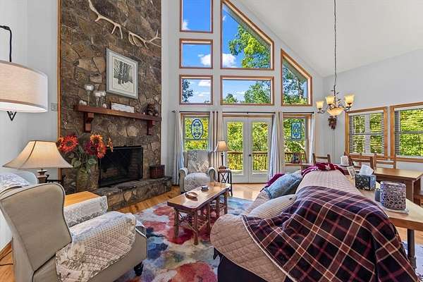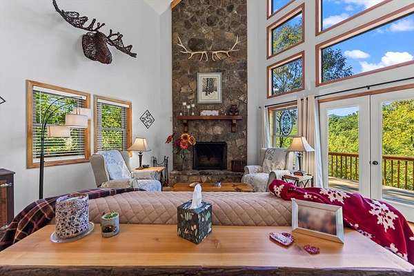 Escape to the mountains in style with this gorgeous 3-bedroom, 3 full bathrooms, plus one half bath custom-built cabin that combines rustic charm with modern comfort. Situated in a serene setting with breathtaking mountain views, this 2,200+ sq. ft home is perfect for full-time living, weekend get-aways, or entertaining year-round! Property highlights: Expansive wrap-around deck to enjoy the magnificent views, a cozy wood burning fireplace in the main living area and a wood-burning stove in the fully finished basement for added warmth and charm, a sleek, modern kitchen with double ovens, quartz countertops, and plenty of cabinet space, a spacious laundry room with a deep sink and extra storage, a whole house central vacume, and a one car garage/ shop. Whether you're looking for a peaceful retreat, a place to host unforgettable gatherings, or a possible short-term rental, this cabin delivers! Call today and take in the view for yourself!
