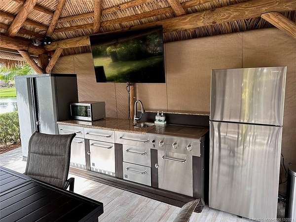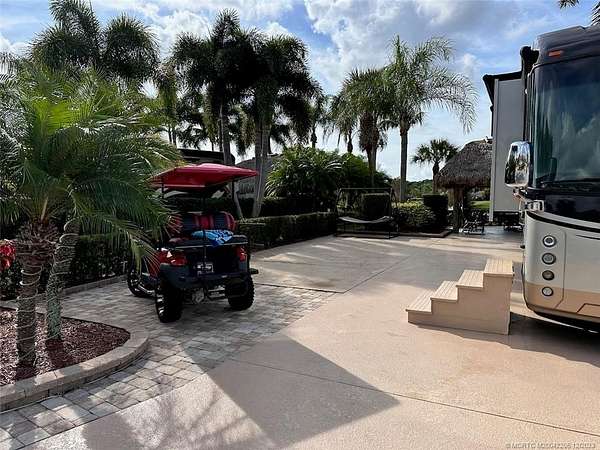 Nestled in the heart of the resort, this prime lot boasts an enviable proximity to the clubhouse, making it a focal point in one of the most sought-after areas. Revel in the breathtaking panorama of two majestic fountains and a serene lake, creating an idyllic backdrop for your retreat. The expansive tiki, showcases a well-appointed kitchen. Your culinary adventures are elevated in this stylish and functional space. The meticulously designed lot features a fully paved oasis adorned with mature palm trees, providing both shade and a touch of tropical charm. Raised landscape beds add an extra layer of sophistication, enhancing the overall aesthetic appeal of the surroundings. Step into luxury, as this property comes fully furnished, ensuring a seamless transition into your new haven. The open green space provides a spacious feeling. Opportunities like these are rare, and this one is poised to be snapped up quickly.