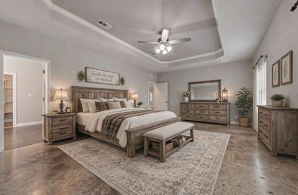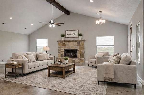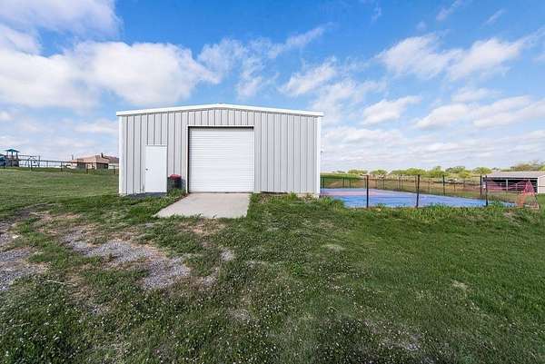Custom Home w NO HOA, over 2 ACRES and HUGE WORKSHOP. Welcome to the relaxed country lifestyle. This spacious 1-story home offers a split bedroom floorplan and is loaded with extras. The CONCRETE FLOORS are not only stunning, but they are easy to care for and durable. The Living and Dining spaces flow seamlessly together so you can adjust for your perfect and specific needs. Overlooking the CHEF EQUIPPED KITCHEN with spacious pantry, granite counters and DOUBLE OVENS. The Primary Suite hosts plenty of room for a sitting area as well as an ensuite bath equipped with a HAIR WASHING STATION. What a treat and an amazing setup for a business, if you wish. The OVERSIZED GARAGE also hosts a TANNING BOOTH that will stay. Don't worry about parking, there is an EXTENDED DRIVEWAY plus a 40x30 WORKSHOP with RV HOOKUP for additional parking. So bring your boat or RV and sports vehicles. The INGROUND GUNITE POOL was added about a year and a half ago, as well as a fun SPORTS COURT, ready for basketball, or convert it to pickleball. Your NEW HOME awaits you! Come see it soon.