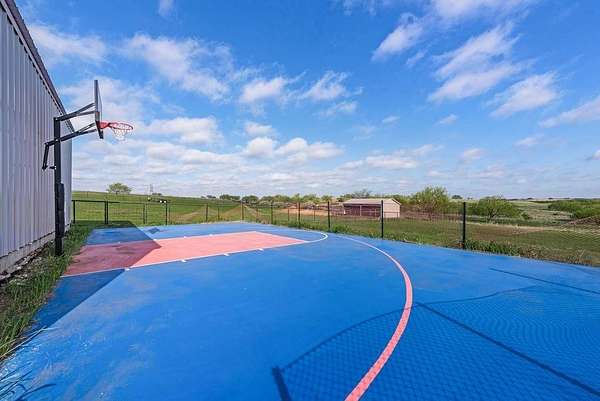 - Basketball Court, Covered Patio/Porch, Fence, RV/Boat Parking, Rain Gutters, Sport Court