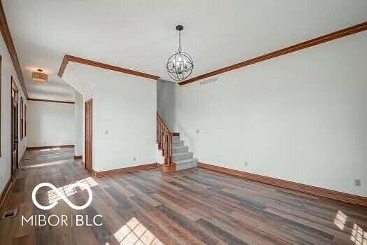 Elegant, recently remodeled rental property located in a beautiful, serene setting on 1.5 acres in the top-rated Yorktown School District! There is plenty of living space here with 6 beds/5 baths and 4774 sq ft. Endless list of features include a gigantic kitchen with double oven, stainless steel refrigerator and dishwasher, handy island, built-in desk, and terrific 10x10 walk in pantry; ideal for Costco or stocking up on essentials. The large deck off of kitchen area is perfect for entertaining...looking out to your own gorgeous woods. The main level offers two separate rooms which could serve as a formal living room as well as a casual family room. You'll find a main floor bedroom and full bathroom and two additional bedrooms (upstairs) have their own ensuite bathroom. The master bedroom is the ultimate retreat with a 12x8 walk in closet, twin vanity sink and separate tub/ step in shower. There are two sets of stairs: one located next to the garage and the other is off of one of the main level hang out rooms. NEW LED lighting, new vinyl plank flooring and carpet, new paint, new light fixtures and striking updated bathrooms. Excellent storage space throughout including a designated laundry room with sink, cabinets and a separate 24x17 detached garage. NO GAS, SEWER or WATER BILL...Tenant pays electric bill, LP gas and Oxley water softener (appr. $18 a month). NO PETS, NO SMOKING. Located in a prime spot close to 332/I69...Yorktown continues to be an ever-growing town with YMCA, Morrows Meadows Park, new library and popular MUNCIANA Volleyball program.