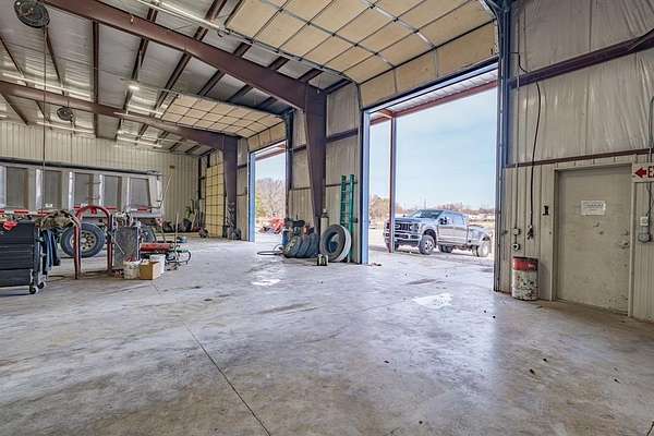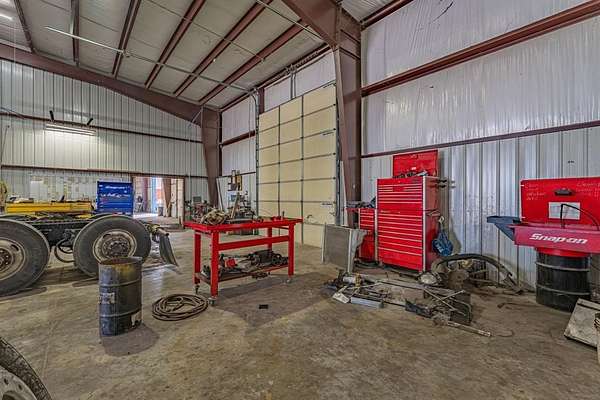 Commercial opportunity on 16+ acres featuring a 16,000+ sq ft shop and office combination built with functionality and expansion in mind. The property includes four drive-through overhead truck bays, allowing easy access for large equipment and fleet operations. Inside the shop area, you’ll find a reinforced concrete floor, eight 80-amp plugs positioned at each bay, and six interior water spigots to support a variety of industrial or service uses. A full bathroom is located within the shop for added convenience.
