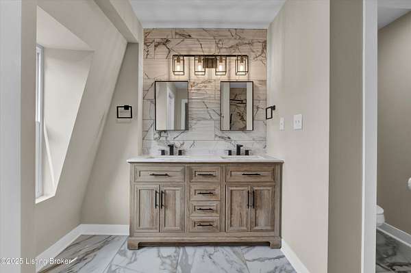Fully renovated and move-in ready, this Crestwood gem feels straight out of HGTV! Situated on 2.72 acres, this home has been thoughtfully updated from top to bottom with modern finishes and stylish details. Renovations include new kitchen appliances, cabinetry, countertops, and tile backsplash, along with refinished wood flooring, new drywall, ceiling fans, doors, and windows. The bathrooms feature new toilets and vanities, while the home also boasts a new septic system, metal roof, & siding for worry-free living. The main level offers an open floor plan with a great room, kitchen, and convenient half bath-perfect for entertaining. Upstairs, you'll find a spacious family room, the primary suite with private full bath, two additional bedrooms, another full bath, & a laundry room ideally located near the bedrooms. An oversized attached two-car garage provides plenty of space for parking and storage, while the 2.72-acre lot gives you room to enjoy the outdoors with privacy and convenience. Potential to split off an acre lot in a few years. Can also be purchased with 4612 Glenarm Rd-mls #1695598. Located close to dining, shopping, and schools, this property blends the best of modern living with a prime location.