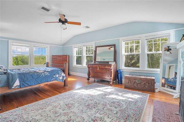 There is no other property like this in Orlando and it speaks entirely for itself. Most people spend their lives looking for a place that feels like it was made for them. A place that slows time down. A place with enough space to breathe, enough history to matter, and enough beauty to stop you in your tracks every single day. 4610 Oak Cove Lane is that place. You'll know it the moment you turn down the drive. Ancient oaks arch overhead, the noise of the city fades, and somewhere between the entrance and the front door, something in you exhales. You haven't even gone inside yet. The home was built in 1924 and it knows it. The two-inch solid wood front door. The original hardwood floors that have carried a century of footsteps. The exposed wood beam ceilings. The fireplace that needs no introduction because it has been here since the beginning. This is a home that has lived, and it shows in the best possible way. The kitchen has been updated thoughtfully, white cabinetry, stone countertops, stainless appliances, in a way that respects what came before it. The dramatic dining room, bold red walls and original millwork, is the kind of room that turns dinner into an occasion. Upstairs, two oversized primary suites share a stunning Jack and Jill bath, each with its own walk-in closet. A loft, flex rooms, and a generous main level flex space give you room to grow into whatever life chapter comes next. Then you step outside and the story gets even better. A wide southern-style side porch sets the outdoor tone, the kind built for slow mornings and long conversations. Beyond it, a large fully fenced pool and spa share the grounds with a grand gazebo structure that stands as a destination all on its own. And then the water finds you. Approximately 850 feet of frontage on Lake Jennie Jewel, a private 70-acre lake. A 200-foot canal threads between two bodies of water, wrapping the property on both sides. A boathouse sits at the water's edge, ready for whatever life on the lake looks like for you. From above, this place looks like an island. From the inside, it lives like a world of its own. Above the detached garage, a full studio apartment waits. Its own kitchen, its own great room, its own full bath, and a rooftop deck with views over the water and the grounds. For guests, for family, for a creative space, it earns its place. And somehow, impossibly, all of this sits just minutes from Downtown Orlando, the SoDo District, the Hourglass District, Orlando Health, and Lake Eola Park. The city is right there whenever you want it. But the moment you turn down that oak-lined drive, you would never know. Some people search their whole lives for a place like this. Others are lucky enough to find it.