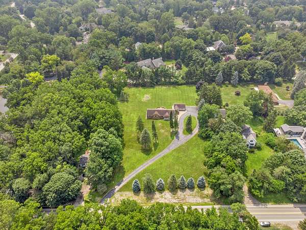 From Downtown Northville head west on 7 Mile, property is on the south side of 7 Mile, very large lot and just past Fish Hatchery Park