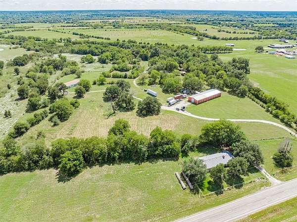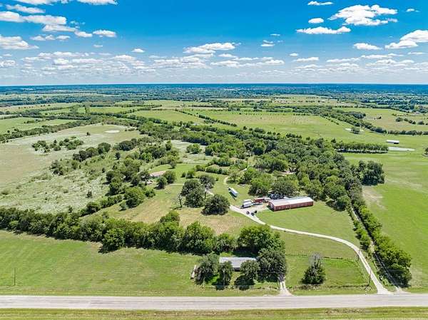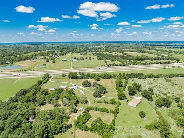 Once-in-a-lifetime opportunity to own this AMAZING property fronting I-30 just minutes east of Greenville! ALMOST 15 ACRES ON I-30! Seclusion and privacy along with the convenience of fronting I-30, all in one. There is so much growth happening in this part of Hunt County! Proven track record of running a business at this location for generations. Endless possibilities to develop into a any numerous business entities including: warehouse, storage units, retail, business distribution center, corporate retreat, etc. Could also be developed for residential, water and electric on site. This property features a 4800 sq ft metal building on a concrete slab with cooler storage, office, and roll up door. There are also two homes, freestanding garage, and barn on the property. The first home is a 3192 sq ft 5-3 tripe wide with two metal buildings. The second home is a 2 bedroom 2 bath cabin with a detached garage with RV parking. Come see this property today!
