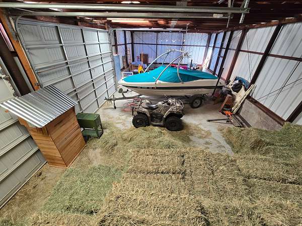 - Balcony, Barn, Basement Entrance, Deck; Covered, Double Pane Windows, Horse Property, Out Buildings, Walkout