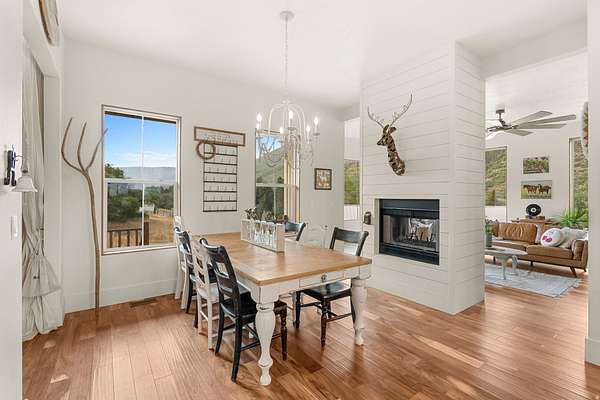 Welcome to this stunning horse property set on just under 7 acres, offering sweeping mountain views and lush green pastures at the base of Daniels Canyon. This serene retreat provides convenient highway access while still giving you the peaceful feeling of your own private rural escape. The property features multiple outbuildings including a large barn, she shed/art studio with solar, tack shed and many animal shelters. There is an EV Charger in the garage, reliable and fast Starlink Internet, the ability to board horses, mature shade trees, fruit trees, multiple outbuildings, and a picturesque seasonal stream running right through the property. With 15 valuable water shares, you have all you need to maintain vibrant pastures, a flourishing garden, or expand your agricultural dreams. Whether you envision a hobby farm, a horse boarding facility, or simply extra space to relax and enjoy, the possibilities are endless. Plus, you'll love the quick access to nearby reservoirs, year-round recreation, and some of Utah's most incredible ski resorts. This unique property offers the perfect blend of beauty, convenience, and true country living. Square footage figures are provided as a courtesy estimate only and were obtained from the building plans. Buyer is advised to obtain an independent measurement.