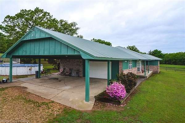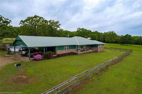 Discover this incredible 20-acre ranchette offering the perfect blend of true country living and everyday convenience-located just minutes from downtown Sallisaw, Oklahoma. Ideally situated only 21 minutes from Lake Tenkiller and just 3 minutes from Brushy Lake, this property delivers both privacy and accessibility. This high-value package features a spacious 3,462 sq ft brick home with a large fireplace and a beautifully maintained interior, offering 3 bedrooms and 2.5 bathrooms on a solid slab foundation. Step outside and enjoy everything this property has to offer: * Above-ground pool * Scenic pond * Well-maintained land ready for livestock or hobby farming Equipped for functionality and versatility, the property includes: * Horse barn with stalls, tack room, and sheds on both ends * Hay barn with additional stalls and tack room * Chicken coop * Quality fencing and gates * Attached 2-car garage + 3-car carport This is a rare opportunity to own a fully equipped country property with space, functionality, and location-all in one exceptional package.