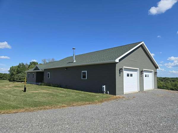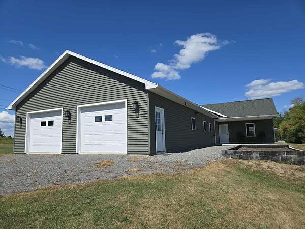 Gorgeous ranch home with 51 acres on the Grasse River. This beautiful waterfront home was custom built in 2017 and has the best of everything. In floor heating, central air conditioning, open floor plan, modern kitchen, vaulted living room ceiling, a heated garage, and more. The heated garage is massive and has room for two or more cars, plus storage, and a large workshop. The second garage has an attached barn with an unbelievable amount of space for vehicles or storage, and the attached barn can easily be used for a hobby farm. Let's not forget the 51 acres that has something for everyone, good hunting, trails for 4 wheeling, and tons of room for a large garden. The bonus is the waterfront recreation area with a sandy beach, firepit and lots of room for family fun. Don't wait on this one. Call an agent today to see it.