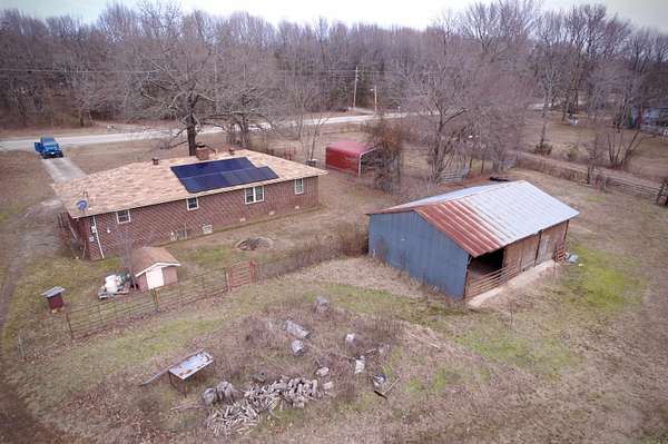 Farmette near Greenwood on a paved road! Ranch style Brick home with 3 bedrooms and 1 bath is powered by SOLAR panels with batteries and 2 generators as well, Electric bill is almost non-existent. 2.83 acres with fencing and cross-fencing with wire cattle height panels for your animals to graze and roam. There are stalls for goats, sheep, calves, or you can expand for horses in the barn next to the shop. The home had a new roof installed in 2019 and has a carport attached that could be turned into a bonus room since there is parking in the garage out back. Under the carpets there are wood floors if you want to uncover them. A Large wood-burning fireplace with blower heats the whole house! Close to shopping and Fort Smith but still with a country feel. Mountains can be seen from the back pasture. The property could be divided and another house put in back. A few updates are needed to personalize it and to make it your own! Central heat is not working but Air is working.