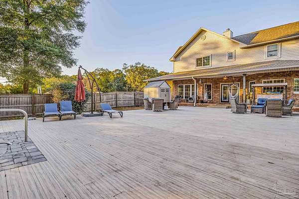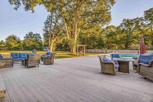 This 5-bedroom, 4-full-bath, 2-half-bath brick home on 8.03 acres offers plenty of space with 3,103 sq ft of living area. Highlights include a wrap-around porch, a 20x40 saltwater pool, an outdoor shower, and a full bath. The home features high-efficiency hurricane windows, a large great room with 9' ceilings, Pergo laminate flooring, and a cozy free-standing fireplace. The kitchen has granite countertops, stainless steel appliances, and a breakfast bar. The owner suite is downstairs with a walk-in closet, Jacuzzi tub, double vanity, and French doors. Upstairs contain 3 bedrooms and 2 full baths. Additional amenities include a 24x70 workshop, RV canopy with 30-amp plug . The home has been updated with a water heater (2023), HVAC, furnace and ducts (2022). There are two septic systems and a laundry chute. Perfect for those seeking privacy, acreage, and space for a large family or hobbies.
