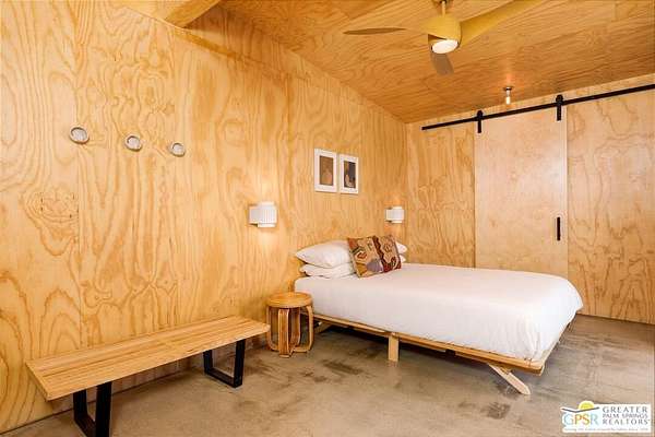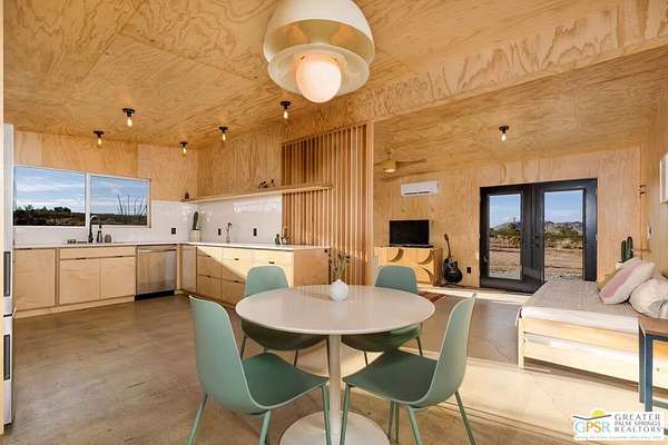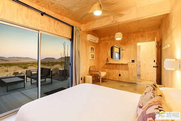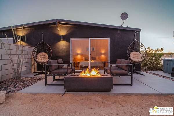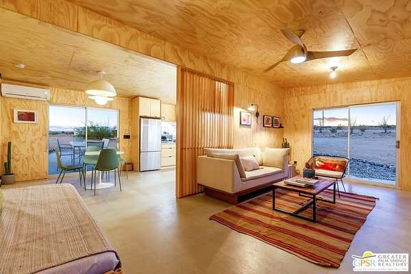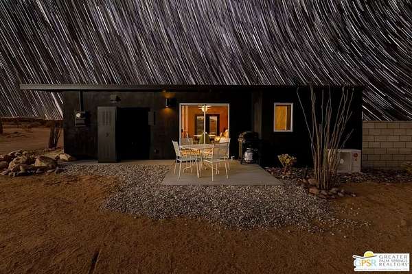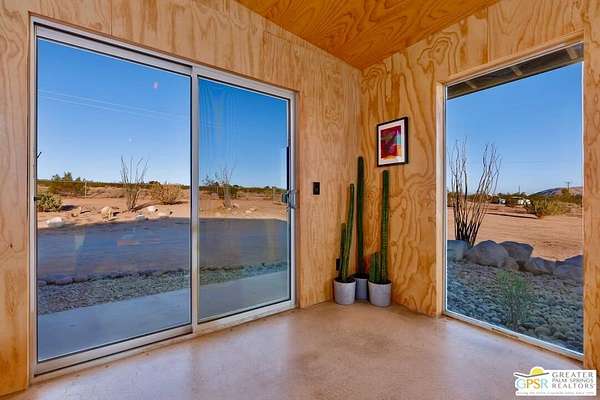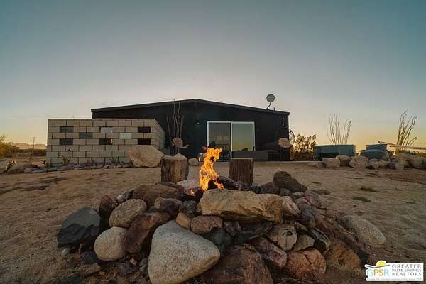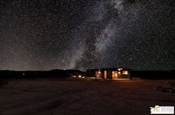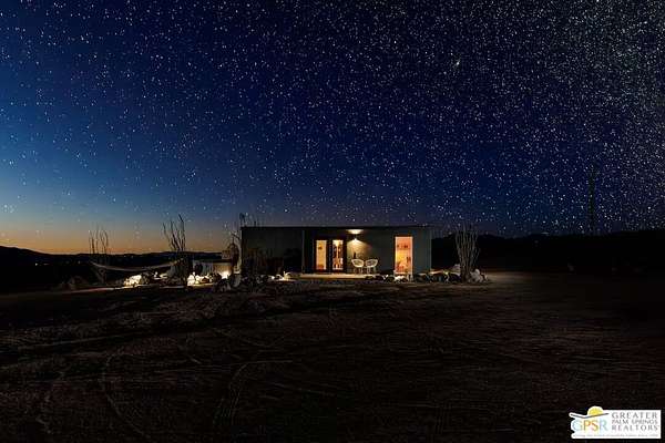 Discover Shadowlands, an extraordinary retreat offering a rare blend of tranquility, luxury, and investment potential. This 5-star-rated Airbnb has held the coveted Superhost status for three years and boasts an active San Bernardino County short-term rental permit true turn-key business opportunity. Set on 5 pristine acres, Shadowlands is an authentic homesteader cabin reimagined into a secluded masterpiece by the renowned Palm Springs design firm Hundred Mile House, led by architect Duane Smith. Surrounded by vast BLM land, this property offers epic panoramic views of open desert landscapes, majestic mountains, and breathtaking sunsets that rival the splendor of Joshua Tree National Park. Step Inside an Architectural Gem Every detail of Shadowlands has been thoughtfully curated to create a serene yet functional retreat. The home features polished concrete floors contrasted by warm wood paneling, while floor-to-ceiling windows bathe the space in natural light, inviting the outdoors in. The interiors exude a minimalist elegance, blending modernist furnishings, original art, imported Turkish textiles, and custom lighting all included in the sale. Living Area: A bright, airy space designed to maximize comfort and style. Chef's Kitchen: Custom wraparound wooden cabinetry, quartz countertops, and new stainless steel appliances make this kitchen a centerpiece for hosting. A Bedroom with a View Wake up to the sunrise over Goat Mountain from the spacious main bedroom, complete with a large glass slider that opens to an outdoor living space. Whether you're soaking up the sun or cozying up by one of the two fire pits, every moment feels magical. Outdoor Living at Its Finest Shadowland is more than a home it's an experience. The expansive outdoor spaces include :A private sunbathing courtyard with a walk-thru shower, a sun deck, and a cowboy tub with house plumbing .A hot tub, propane and wood-burning fire pits, BBQ, hammock, and multiple dining and lounging areas. Additional Features Brand-new solar system with grandfathered NEM 2.0 for optimal energy savings. Mini-split HVAC, xeriscaping, high-speed WiFi, Roku-enabled HDTV, and 1.5 acres of fenced property. Proximity to local landmarks like the Giant Rock and the Integratron, making it a hotspot for travelers seeking a one-of-a-kind Hi-Desert getaway. Shadowlands isn't just a property it's a lifestyle and a lucrative investment. Whether you're looking to own a slice of desert paradise or continue its legacy as a successful vacation rental, this exceptional property is ready to welcome you home. Schedule your private tour today and experience Shadowlands for yourself.