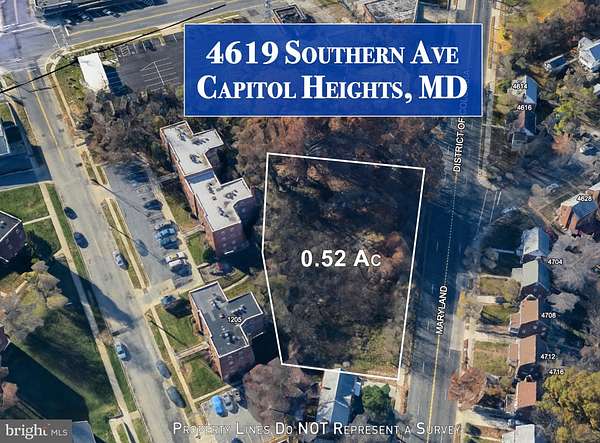 PRICE REDUCED Introducing a rare development opportunity with an ideally situated vacant lot at 4619 Southern Ave, Capitol Heights, MD 20743. This prime property offers tremendous potential for residential or commercial development. Key highlights include: Vacant, lightly wooded lot: This lot is ready for immediate development, with no existing structures to remove or relocate, offering a natural ambiance in a convenient location. Flexible zoning: Zoned for both commercial and residential use, this property is perfect for apartments, mixed-use buildings, or other versatile projects to suit your needs. High-visibility location: Situated at the thriving intersection of Southern Ave, Marlboro Pike and Alabama Ave this lot benefits from excellent visibility and easy access to urban amenities. Access to major cities: Steps away from Washington D.C. and Maryland, ensuring convenient commuting and proximity to city conveniences. Motivated seller: This property boasts a smooth transaction process, thanks to a motivated seller ready to make a deal. Easy identification: With a clear sign on the property, you can locate and visit the site with ease. Don't let this unique development opportunity pass you by. Visit 4619 Southern Ave, Capitol Heights, MD 20743 today, and unlock the potential of this ideally located vacant lot. *PRICE REDUCTION *