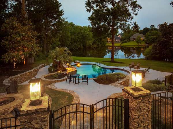 ACTIVE CONTINGENCY WITH KICKOUT, SHOWINGS WELCOME Welcome to luxury living on the largest lot in Riverwood Plantation! Every inch of this trophy property provides you with the exquisite living experience you have been looking for. This rare gem is custom-built with uncompromising quality craftsmanship and design. Every detail of this home is amazing, from the beautiful hardwood floors to the extravagant molding and carpentry. This oasis on 3.61 acres with stunning waterfront views of the pond has it all: granite countertops, chef's kitchen with two islands, luxury appliances (Viking microwave, Thermador double ovens, and Sub-Zero fridge), and beautiful brickwork, large secondary bedrooms and a spa-like owner's retreat. Admire your custom pool with waterfall feature, water slide, and diving board from either double deck, perfect for Al-fresco dining. You can experience all inclusive, resort style living with spa, theater, gym, bar, and game room, making you feel like you are on vacation daily. There are two garages, one for three cars and another free-standing garage that can be used to store a boat, RV, or golf simulator. There is even an unfinished upstairs space that could easily transform into a studio apartment or mother-in-law suite. Zoned for Greenbrier schools. Prior Masters rental. Close to elite Champions Retreat Golf Course. Welcome to serenity, welcome home to this better than new, rare find in Columbia County! Please verify if square footage and room sizes are important to you