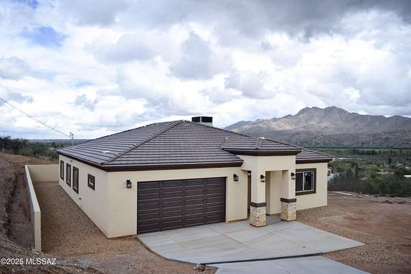 Nestled on just under two acres of peaceful land, this newly built 3 bedroom, 2 bathroom home offers the perfect blend of comfort, style, and space. With 1,769 square feet of single-level living, you'll enjoy an open and functional layout. Step inside to find wood look laminate flooring throughout, with tile in both bathrooms. A spacious kitchen featuring granite countertops, stainless steel appliances, and plenty of cabinet space. The covered back patio is the perfect spot to take in the stunning mountain views and Arizona sunsets, while the two-car garage adds convenience and extra storage. With nearly two acres of land, there's plenty of room to expand, add a workshop, or create your dream outdoor retreat. Enjoy peaceful living with easy access to I-19, shopping, and schools, making this Rio Rico gem the ideal balance of privacy and convenience.