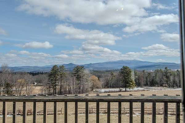 Est $3,676/moExceptional setting overlooking the White Mountain Range of NH, this thoughtfully sited home take advantage of all 13.4 acres. Perfect for animal and horse lovers, the 2 stall barn is perfect with power and water leads to a fenced paddock and open meadows. The homes features first floor living with stunning cathedral living area with fireplace overlooking the views. Ensuite primary bedroom, office, recreational room and bonus loft space. Two decks, one and each side of the home take full advantage of the abundant sunlight. Pond, open land, views, and open floor plan make this the perfect homestead.