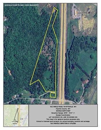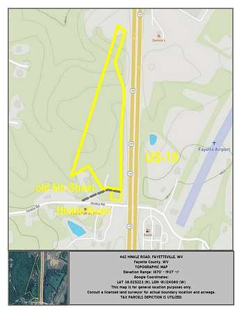 OVERVIEW Strategic Development Location with Strong Visibility: Unquestionably, there are no other commercial development properties for sale in Fayette County offering thirteen acres and a half mile frontage along US - 19 (and quite possibly all along US-19's one hundred mile march through central West Virginia). The long-term value of the thirteen-acre parcel is driven due to it being highly visible to the passengers of 20,000+- vehicles who pass by daily. For the investor, the property represents a strategic investment opportunity with significant growth potential. Developers will find this versatile property immediately available and ripe to unlock its unlimited possibilities. West Virginia Has Been Discovered. America's Newest National Park Drives Demand: The Fayette County region has experienced vibrant demographic and economic growth. The area's steady growth may be attributed to its enviable location in the heart of the booming New River Gorge recreation mecca. Named "America's Newest National Park," the 70,000-acre New River Gorge National Park and Preserve has experienced an explosion in annual visitor numbers going from one million in 2020 to nearly three million in 2024. VERSITAL ZONING ENCOURAGES ECONOMIC DEVELOPMENT: The property is zoned B-2, allowing for development of Heavy Commercial and Light Industrial, as well as General Business. The zoning is suitable for many diverse businesses and industries. Currently the utilities include water, electric, and modern technology infrastructure. Schedule a private viewing today to experience the potential firsthand. HIGHLIGHTS *Thirteen Acres+/- prime development land with versatile zoning *Unrivaled visibility with a half mile frontage along US -19 *Located in the heart of the New River Gorge recreation mecca *A strategic investment opportunity with significant growth potential for the investor *Developers will appreciate the immediate availability of this versatile, in demand, commercial property *The newly designated 80,000 acre New River Park and Preserve drives demand *Benefit from exceptional accessibility and proximity to key destinations *Average traffic counts of 20,000+ per day *Zoned B-2 - allows for Heavy Commercial, Light Industrial, and General Business *Current utilities include: water, electric, and a modern technology infrastructure *Walmart, Lowes, Tractor Supply, restaurants, fuel, etc. - one mile north on US-19 *Unlock the potential of this prime location MINERAL RESOURCES The property is Surface ownership. The minerals ownership has been severed by prior deeds. All rights the owner has in title will be conveyed with the property. BOUNDARIES AND SURVEY The eastern property boundary runs with US-19. Some other boundaries run with old 5th Street and with Hinkle Road. The property is being sold by the boundary and not by the acre. UTILITIES Water: Public Sewer: Septic Electricity: Yes Telephone: Yes Internet: Yes Cellphone Coverage: Excellent ACCESS/FRONTAGE The property is accessed by old 5th Street. There is about 1/2 mile of frontage on US-19, about 450 feet of frontage on old 5th Street, and a little over 100 feet of frontage on Hinkle Road. ZONING ?The property was zoned under the original 1966 zoning. The property's zoning allows for Heavy Commercial, Light Industrial, and General Business. The current zoning would not allow residential dwellings, churches, and schools. All prospective buyers should consult the Fayette County planning and zoning departments, also the Health Department for details regarding zoning, building codes, and installation of water wells and septic systems. PROPERTY TYPE/USE SUMMARY The property contains a total 13 acres+/- An engineering plan shows a maximum site development acreage of 8 1/2 acres+-. The remaining 4.5 acres+- is wooded.