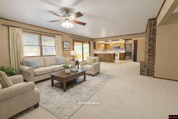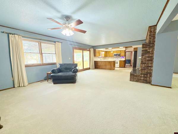 - Carpet, Ceiling Fan(s), Open Floor Plan, Parquet Floor, Tile Floors
