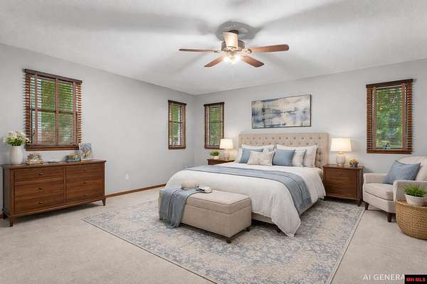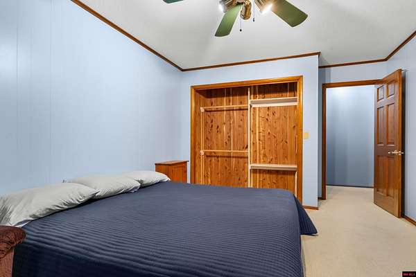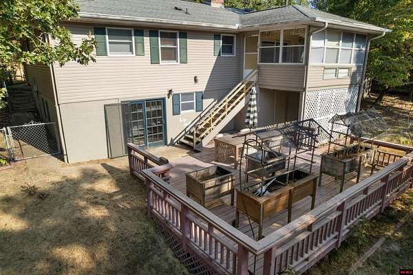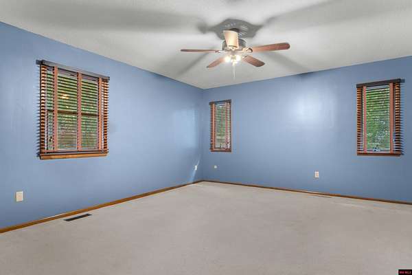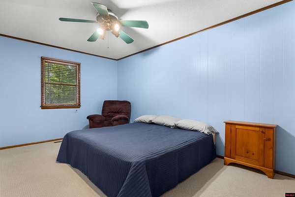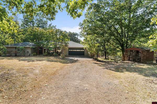 3.45 ac m/l with no restrictions just .5 mi from lake access with a boat ramp! This spacious 3 BR/2.5 BA residence boasts a warm & inviting atmosphere, featuring a cozy wood-burning fireplace, open floor plan, office, spacious utility rm & a sunroom complete w/lg windows where you can enjoy morning coffee. Step downstairs to fresh paint & new vinyl flooring in the finished basement that enhances the home's appeal. Enjoy the game room, complete w/pool table that conveys! Outside, fenced-in backyard, ideal for pets & play. The outdoor space is complemented by a deck perfect for entertaining, outdoor wood furnace & raised garden beds for your green thumb. Additionally, the property includes a two-car garage with a workshop area in the basement, a 24 x 30 shop building, and a 24 x 24 barn—offering you endless possibilities for storage, hobbies, or even a mini-farm setup! With fruit trees dotting the landscape & a wooded lot providing privacy, this home is a true haven for nature lovers.