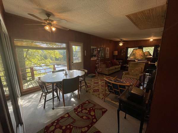 One-of-a-Kind Outdoor Retreat - 122 Acres of Pure Serenity: Welcome to your private slice of paradise-122 acres (+/-) of pristine natural beauty, perfect for outdoor enthusiasts, investors, or anyone seeking a secluded getaway. This extraordinary property offers a rare blend of rustic charm, modern convenience, and endless recreational possibilities. Main Cabin Features: Spacious 2-story home with 3 bedrooms, 2 bathrooms, and a dedicated workshop; Equipped with a backup generator for peace of mind; Expansive wraparound deck, partially screened for year-round enjoyment; Upstairs balcony with panoramic views of the lake and surrounding forests; Private stairway leading to a covered dock on your own lakefront. Guest Cabin & Communal Spaces: Charming 1950s retro-style cabin with 2 bedrooms, 1 bath, and stunning lake views; Several storage sheds for tools and gear; A communal cabin located near the designated swimming area-ideal for gatherings or events. Lake & Wildlife:8-acre lake built by the Army Corps of Engineers, featuring a swimming area and new drain tile installed within the last year; Stocked with bluegill, bass, crappie, and catfish-a fisherman's dream; Surrounded by hickory, white oak, and black oak, last logged in 1995; Prime habitat for deer, turkey, and other game-perfect for hunting and hiking. Utilities & Access: Gas well on-site providing free gas and an annual royalty check; Located on Lake View, a private drive ensuring tranquility and privacy. Investment Potential: Whether you're dreaming of a Bed & Breakfast, Airbnb retreat, hunting lodge, or an outdoor recreation business, this property offers unmatched potential. Its natural beauty, infrastructure, and location make it a rare and versatile opportunity.