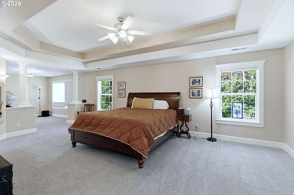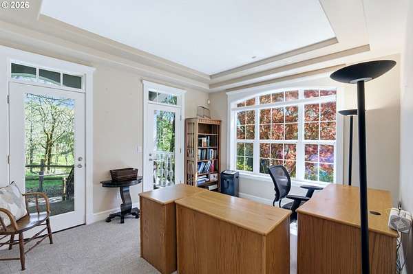Tucked away on a private 2-acre lot, this custom-built 4-bedroom, 3.5-bath home offers space, comfort, and timeless appeal in a highly desirable neighborhood. A well-appointed kitchen with SS appliances, island, butlers' pantry, bar sink, and double ovens. The primary suite offers a private sitting area and a luxurious en-suite bath with step-in shower and jetted tub. 2nd bedroom with WIC and private bathroom. 3rd & 4th bedrooms have Jack & Jill bath between them. Home office on main with outside access. Separate heating for upstairs and downstairs. Oversized windows. Room to enjoy the outdoors, whether relaxing, gardening, or hosting gatherings. Country feel yet close to shopping and schools. A Must See!