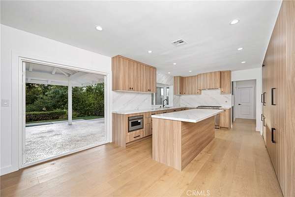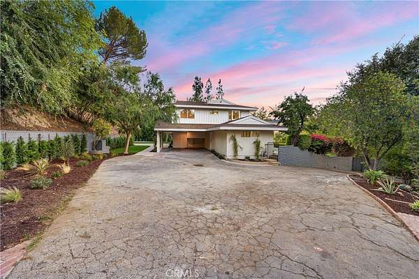 Nestled in the hills of Encino on an expansive private lot. If you are looking for privacy and security, this is definitely the property to be looking at. This secluded property is RTI ready, with plans for a 11,621 sf estate that includes 8 bedrooms, 11 bathrooms, an attached ADU. Enjoy this prime south of the Boulevard location, ideally situated within a highly rated school district and close proximity to everything the Valley and Westside have to offer. Tucked behind a private gate at the end of a long driveway, the current home welcomes you through double doors into a spacious family room that overlooks the lush backyard and flows seamlessly into the formal dining room. A culinary enthusiast's dream, the gourmet kitchen is equipped with chef grade Thermador appliances, custom cabinets, a massive island with seating and walk-in pantry. Rounding out the main level is a sizable living room that boasts a stunning fireplace and walls of glass that flood the space with natural light, laundry/mud room and secluded bedroom. Retreat upstairs to the stately primary suite, complete with a custom walk-in closet and sumptuous bathroom that features a soaking tub, rainfall shower system and double vanity. Additionally, you will find three generously sized bedrooms upstairs, one of which has an ensuite bathroom. Surrounded by mature landscaping, the serene backyard oasis is the perfect spot to relax or entertain guests. This expansive property offers a sparkling pool, covered patio, sports court and grassy yard. Further amenities include a two car carport, large driveway with abundant parking and ample storage space throughout, including an attached storage shed.