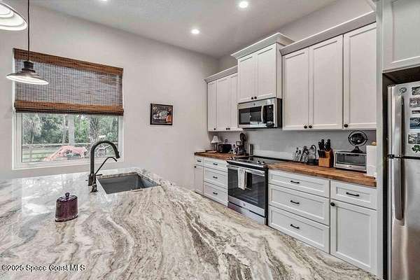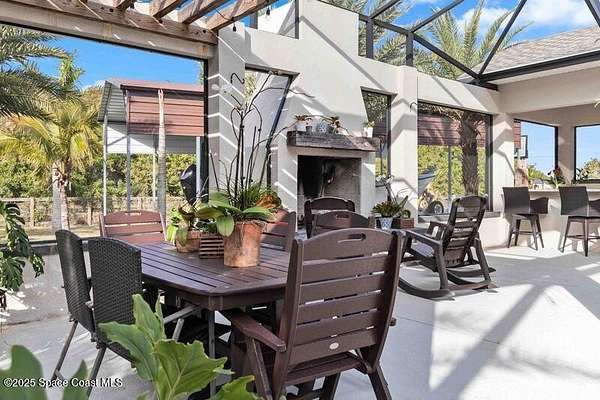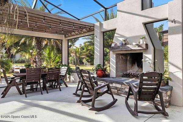Two fully self functioning Riverfront homes situated on a stunning resort style 2.17 acres. 177 feet of waterfront on the Indian River and minutes to Sebastian Inlet and world class fishing. Main home features 2807 LSF, 4 bedrooms 3 1/2 baths, 3 car garage and an upstairs bonus room with a balcony. The second home has 1035 LSF, one bedroom, 1 bath, den, and a great room concept. This is perfect for multi generational or even an AIRB&B with no restrictions. Huge Panoramic screened porch offers a separate trussed gazebo, outdoor kitchen, fireplace, and a pool with fountains. The property is fenced and offers 3 RV hookups, boat or RV Storage, outdoor firepit, chicken coops, and a HUGE circular driveway. Extra fill brought in to add stables and bring your 2 horses! ROOF IS NEW and has impact windows throughout.
