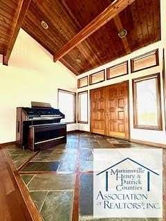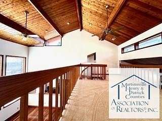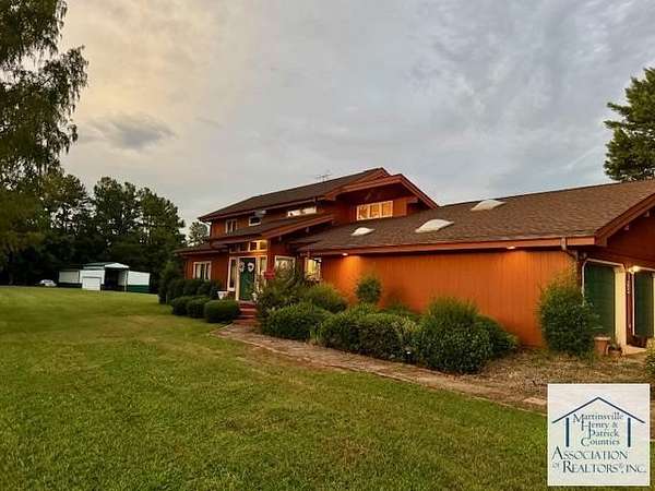 Welcome to 4620 Stoney Mountain Road in the Axton area of Henry County, Virginia, just east of Martinsville. Set on approximately 5.5 acres of gently rolling land, this custom Lindal home offers exceptional privacy, a serene private pond, a large metal barn with stalls and a workshop, and an additional storage building. Enter through double doors onto a slate foyer that opens to a spacious living room anchored by a rock fireplace with a wood-burning stove. Plethora of oversized east-facing windows bathe the room in morning light. The open kitchen (Parque Flooring) and dining area are ideal for entertaining and are conveniently adjacent to a half bath and a generous laundry room. Off the living room, a hallway leads to an office, a guest bedroom, a full bath, and a large bedroom with access to a private deck overlooking the pond and pasture. Upstairs, a loft overlooks the living room and those dramatic windows. The primary suite features a gas-burning fireplace and a private deck with views of the pond and the expansive lower deck. Additional highlights include 3 bedrooms, 2.5 baths, newer heating and cooling systems, a whole-house Generac generator, cedar wood siding with a newer roof, and an oversized double garage (26'x22') off the kitchen. Enjoy an open floor plan and true country privacy just minutes from town. All information taken from tax records from HC, Buyers to verify all relevant information. Property being sold "as is."