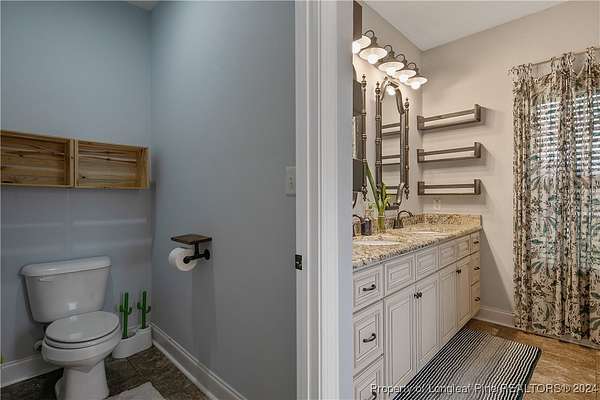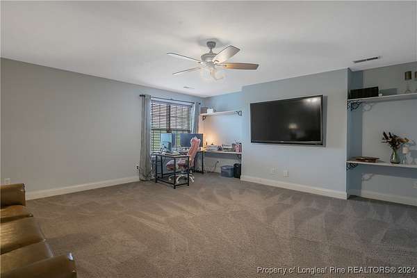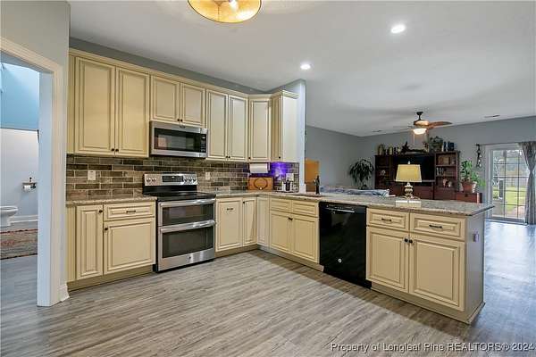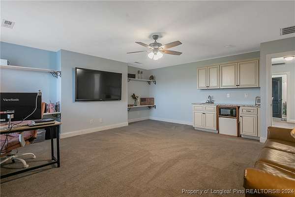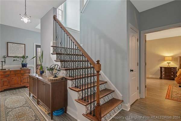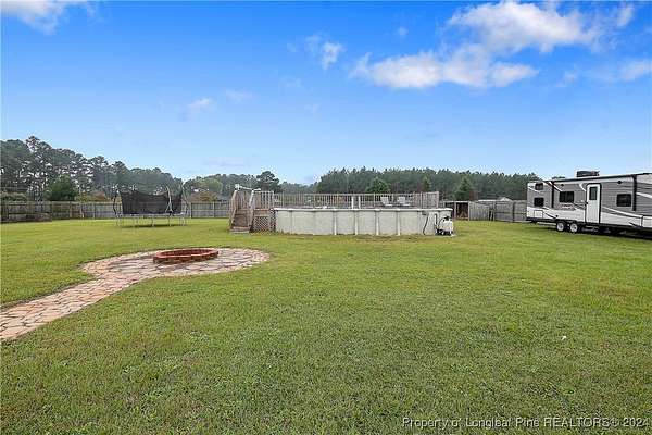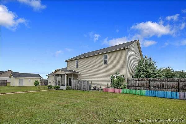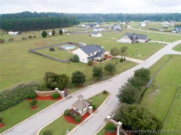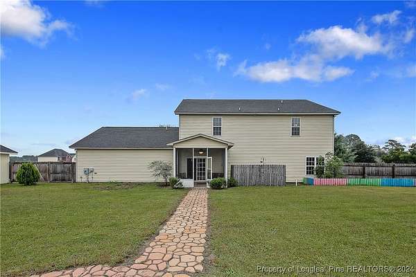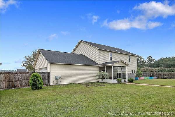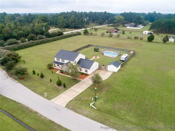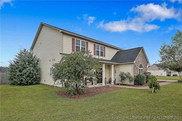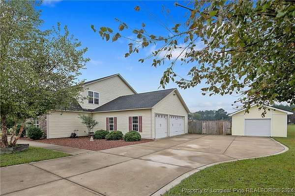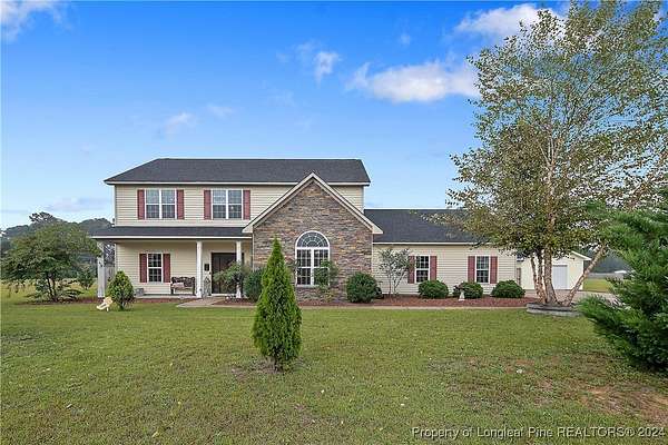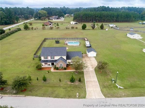 This amazing 4 Bed/3.5 bath home sits on over 2 acres of land in the Orchard Park subdivision. Located in Wade, NC you enjoy a country setting that is approximately 20 minutes to Fort Liberty. With over 3200 SF there is plenty of space for everyone. This home features a formal dining area and primary bedroom located at main floor. The primary includes a dual vanity and walk-in closet. Located upstairs are 3 large bedrooms and 2 full baths. For further entertainment upstairs you have a huge bonus room featuring a wet bar. The kitchen boasts beautiful creme colored cabinets with tile backsplash and opens up at the breakfast bar into the spacious living room. Very large 3 car garage. Covered and screened in back porch. Fenced backyard with firepit and above ground pool with deck. Huge shed with overhead door for loads of storage or a workshop. Don't miss this beautiful home with a great location, large lot, and easy commute to Fort Liberty.