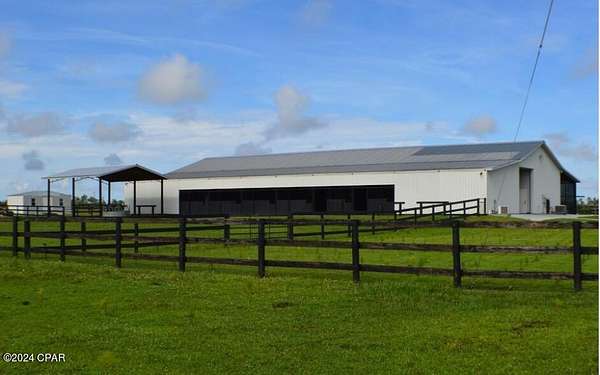 YOU CAN OWN PARADISE! Almost 50 ACRES of the most Breathtaking, rare one-of-a-kind property in Bay County all while still being just close enough to Panama City and the awesome beaches of Panama City Beach! Zoned AG2 you'll have several options to choose from. Just look through the pictures and you will find this is truly a hidden gem. Complete with horse stalls and feeding station. you can self-sustain here for months on end. Both Main Structures have a combined 18000 sq ft of roof coverage. Every detail inside was meant to dazzle with elegance. Roofs, ceilings, and walls all built with 2 x 6's. 16'' commercial tile throughout. Deep well with 5HP pump. Six oversized stalls. Equipment barn, custom cabinets, 10' ceilings, 9 bedrooms, 20X60 screened porch & 3 ponds!! Property also can be used for private air strip or heliport.