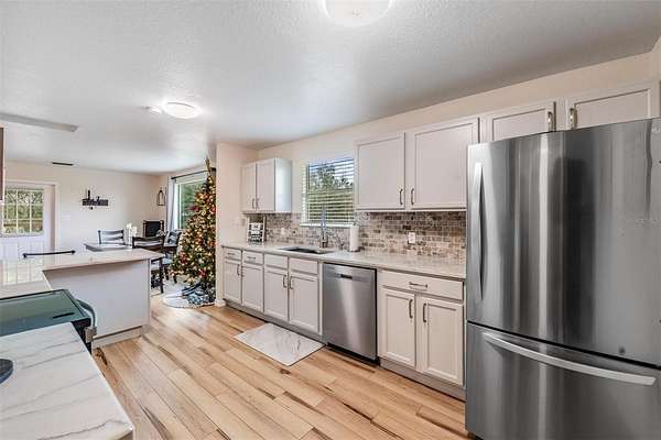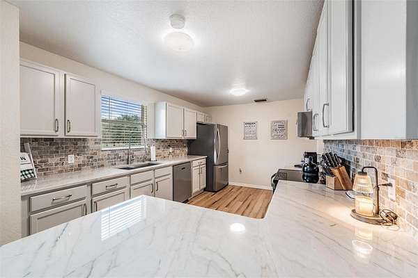LOCATION. LOCATION, LOCATION!!! Craving a little space? Looking to build your own FAMILY COMPOUND or simply escape the tract home life? Situated perfectly BETWEEN TAMPA & ORLANDO yet off the beaten path, This beautifully UPGRADED 2 bedroom cutie is located in Plant City, FL sits on 5 usable ACRES with a DETACHED 3 CAR GARAGE & SHOP! The home was built in 2004 and is a very spacious 1200 sq. foot with 2 HUGE BEDROOMS, 1 SPACIOUS BATHROOM and 1 FULL BATHROOM DOWNSTAIRS in the barn area, great room and GORGEOUS REMODELED KITCHEN! Each end opens up to a 20x12 COVERED DECK for coffee in the morning and cocktails in the evening.
