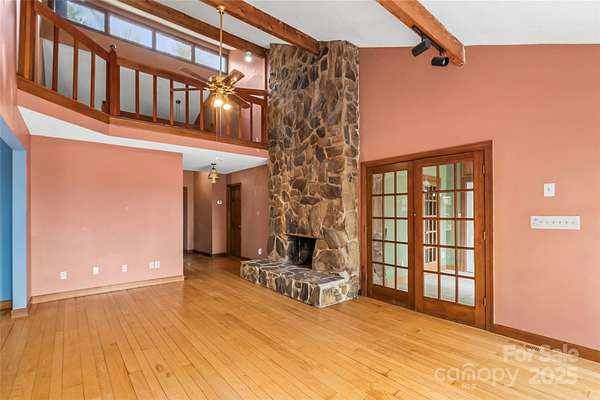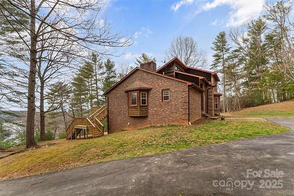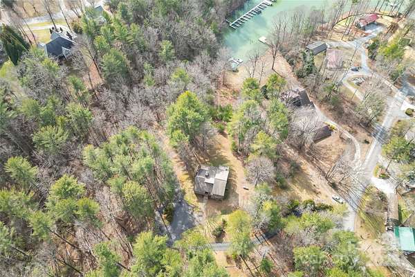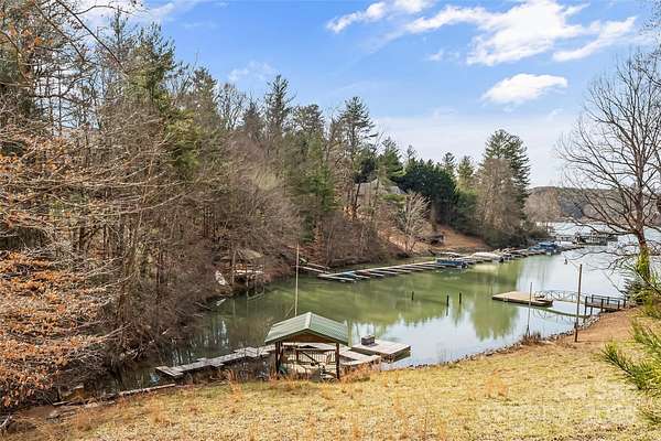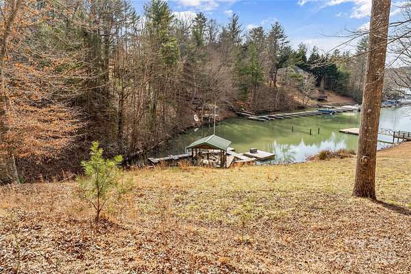 Unrestricted waterfront home with 3.8 acres on Lake James. There aren't many of these properties! Private contemporary home with run in shelter and some fencing for your animals. Circular paved drive and additional storage building with a lower gravel drive to the lakeside. Gazebo and floating dock in quiet cove. This 3 bedroom, 2 bath home boasts a floor to ceiling stone, wood burning fireplace, main level primary bed & bath with lake facing office area. Large kitchen and dining area. Upper level includes 2 bedrooms with hall bath and loft area. Newer triple level deck on the rear. Unfinished walk out basement with laundry. Whole house propane generator. With some love and attention, this home could be your private lakeside retreat. Just 15 minutes to downtown Morganton and minutes to Fonta Flora State Trail, Lake James State Park and Pisgah NF.