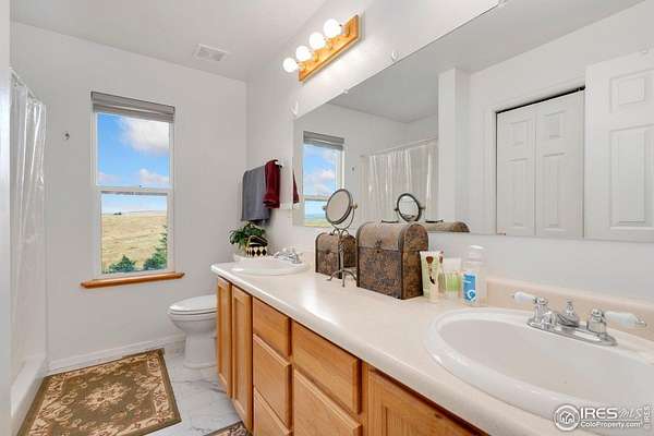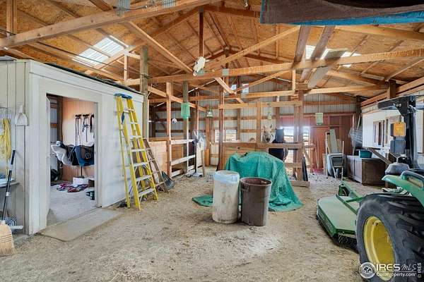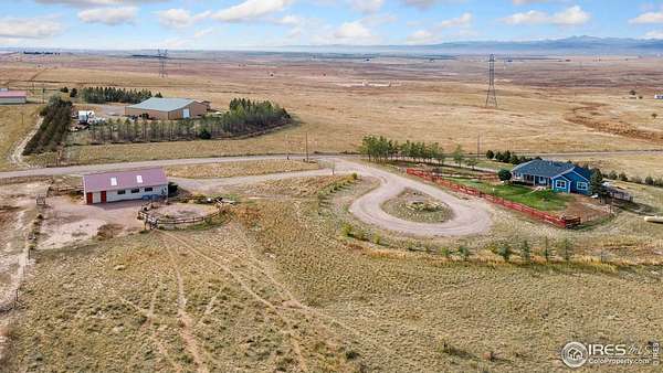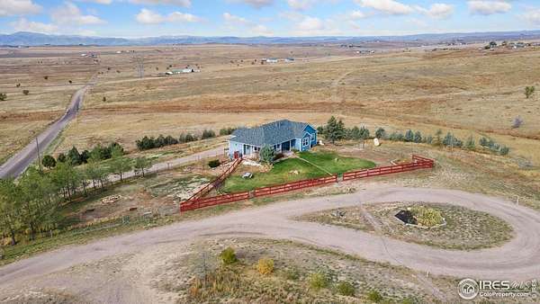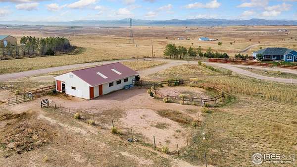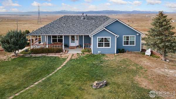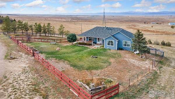 Discover your sanctuary on 43.71 acres of open prairie with sweeping Front Range views. Just beyond the bustle of town, this peaceful ranch retreat offers space, privacy, and endless potential. Inside, you'll find vaulted ceilings, an open layout, a cozy living room centered on a gas fireplace-perfect for quiet evenings or gatherings with family and friends! Just off the living room you'll find a fully enclosed porch equipped with a beautifully maintained hot tub! The spacious kitchen features a generous island and plenty of prep space.With 4 bedrooms and 3 baths (including a main-level primary suite with walk-in closet and west-facing windows), this home balances comfort and functionality. The walk-out lower level adds versatile living space for recreation, hobbies, or guests.Equestrian-ready, the property includes a 47x 32 barn with three stalls, an office, tack room, and several individually fenced pastures, perfect for rotational grazing! Plus no HOA or covenants. Bring your horses, livestock, RVs, and trailers. The domestic well supports full use of the land, and the property may qualify for a Family Farm Exemption! An oversized two-car garage with shop area adds utility, while gently rolling terrain and mature trees enhance the beauty. Conveniently close to town yet worlds away in feel! This is your homestead, your ranch, your retreat.