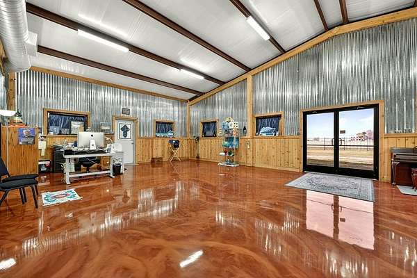 Waiting for your business!!!! Look no further this office showroom -warehouse building has impeccable stained floors, half walls of rustic wood and metal with wood trim out. Open Office space is 1,200 sf with additional 1,200 sf open area with stairs that lead to loft that can also be used for storage and or office space, two restrooms - one with shower - one with cubbies for storage, safe room. Insulated Warehouse has 2 Lift Master roll up doors, 1 regular roll up door, 3 entry side doors, 3 phase electric 30 amp with set up for 50 amp, washer and dryer, shop sink, 18' ceilings in warehouse, 6,000 BTU air conditioning with 2 mini splits, This property has all you need and is completely behind iron fence rails and electric gate sits on 1.5 acres with 6,250 sf building and 6 inch concrete on 18 inch centers for parking. Located off Hwy 34, FM 903 area. Within 5 Minutes to I-30. Information deemed reliable. Buyer and or Buyers agent to verify all information pertaining to property