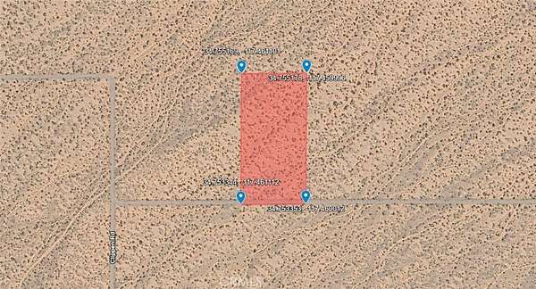Est $186/mo5 acres zoned Residential Vacant Land ready for your vision. Land parcel identified by APN:0462-651-21-0000. No situs address assigned by county; address shown is for MLS input only. GPS coordinates: 34.754255, -117.460554. Buyer to verify zoning, permitted uses, and utility availability.