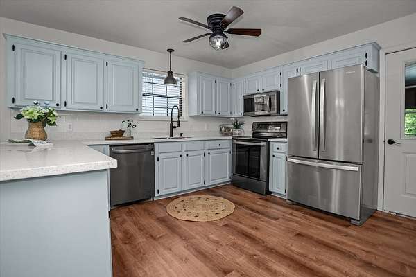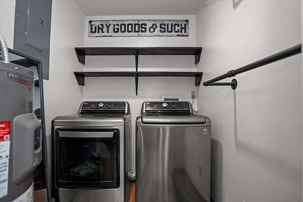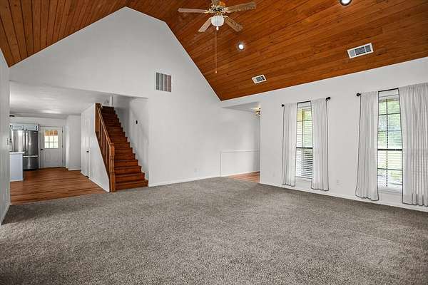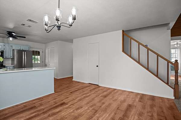 - Blinds, Ceiling Fan(s), Open Floorplan, Pantry, Primary-Lower Level, Split Bedrooms, Vaulted Ceiling(s)