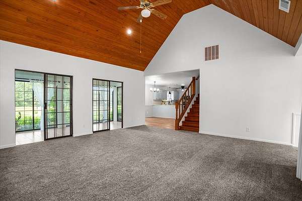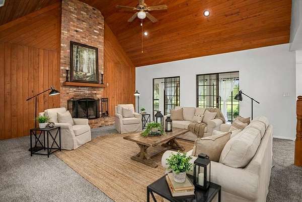 PRICED TO SELL, SELLERS ARE PACKED & READY. Tucked away on 21 pristine acres, this two-story home offers the perfect blend of modern comfort and natural charm. A scenic private drive winds through 11 acres of pine forest and opens into a 10-acre hay meadow, bordered by a wide trail ideal for exploration. Landscaped areas feature fruit trees, a sunlit yard, and an original 1800s well. Inside, the home boasts two ensuites, vaulted wood ceilings, and a stunning fireplace. Updates include quartz kitchen countertops, freshly painted cabinets, new fixtures, and flooring throughout. Major systems and appliances are under three years old. Relax year-round in the sunroom with views of majestic oak trees. Additional features include a 2-car detached garage/shop, chicken coop, RV hookup, an extra electric pole, and a second water meter—ideal for future expansion. Whether you seek a private retreat, hobby farm potential, or simply room to roam, this unique property has it all.