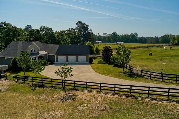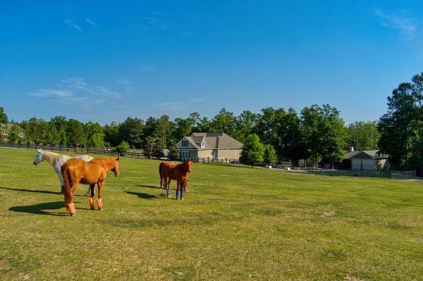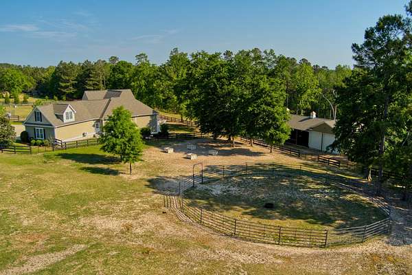 Outstanding home with so much to offer in one property. As you enter the gates you immediately notice green pastures on both side of the drive. A sweet front porch inviting you to come sit & relax. A hard to find 3 car garage with paved parking galore. Inside the home meets you with soaring 9 ft ceilings throughout and a 16ft cathedral ceilings in great room with a wall of windows spanning multiple rooms displaying vast wooded views as well as views of the stunning barn. Natural light pours into the open floor plan with eye-catching walnut floors. The great room both calls for family & friends to gather as well as cozy comfortable evenings. The kitchen & dining are open to great room providing the ease of modern living. The abundant kitchen island is the hub of cooking, serving, & entertaining while inviting you to pull up a stool for a tasty bite & a good chat. There is a lovely Trex deck, no maintenance needed, off the kitchen/dining room perfect for grilling, herb garden, potted plants and taking in the outdoors. The sellers truly thought of everything as the deck & rear yard is fenced in for pets and even boasts a fire pit. There is an office with pocket doors for privacy, perfect for an at home work space. There are 2 lovely secondary bedrooms on the main level. The primary suite offers space for large furnishings, a detailed trey ceiling, wall of windows allowing you to wake up with full view of your horses in their stalls. The primary bath offers plenty of room for two, dual vanities with loads of counter space & cabinetry. Large walk-in tiled shower with frameless door, massive walk in closet with ample shelves & racks. Terrific second floor bonus room with 1/2 bath and deep closet. The bonus room gives an owner the ultimate flex space, with options such as, bedroom suite with live / work space, exercise room, art or hobby studio, music room, library, home schooling classroom, quilting, man cave, or climate-controlled storage, whatever you may need. The oversized 3 garage is a car enthusiast's dream! Entering from the garage the mud room/drop zone is equipped hanging racks for coats and floor space for muddy boots with large utility sink, space for the pets to nap and not drag the mess through the house, sturdy tile floors, big laundry room and huge walk in pantry. The barn and shop were recently & thoughtfully built with all top-notch materials. The four 12 x 12 custom stalls from Heritage Equine with oversized rear windows your horses have views in all directions as well as the high ceiling for optimum air flow perfect for comfort, health and well-being of your horses. The stalls all have mounted fans, stall matts, attached feeders & no wood to ground contact. The 14 ft fully matted aisle way offers ease & comfort while tacking up, grooming, farrier or vet work with convenient tie rail. Plenty of terrific LED lighting, outlets and water spigots. Hot and cold wash rack steps from the barn offer safe and comfortable place for a bath. The tack room is a 14 x 32 heated and cooled with custom cabinetry, sink, loads of counters & private bathroom, this could truly be used as lounge or even a living space. The feed room is 12 x 32 with an automatic-garage door for feed delivery. The shop/equipment/trailer/tractor/ATV storage is 26 x 32 & offers commercial roll up doors, the concrete floor is re-enforced, could support a lift, has electrical power that could support welding if needed. This space is so versatile, even a great spot for a golf simulator, cart and club storage! This location is perfect for golfers to play all the courses Aiken offers & this home is 8 miles to charming downtown. Community trail system enters from property & neighborhood arena is steps away. Easy to get to Hitchcock Woods, tennis & pickle-ball venues, multiple horse show venues, our wonderful Aiken Center for the Arts, Hopeland Gardens, so close to major employers in Aiken, Augusta and North Augusta.This property is truly an impressive!