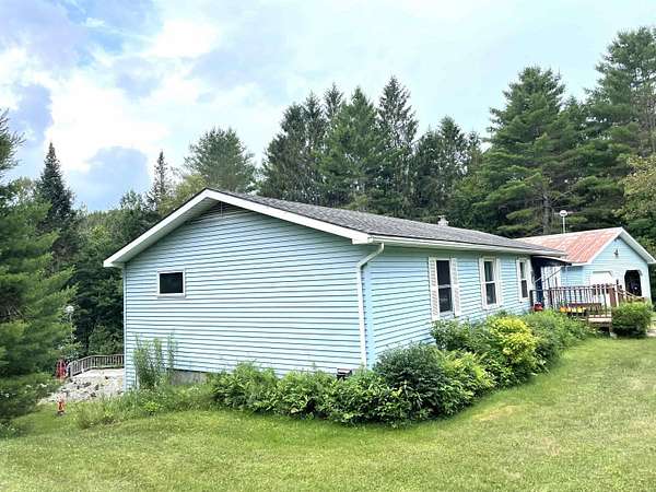 This country ranch features three beds,one full bath and a half bath. Sited on 3.1 surveyed acres,it is just a stones throw from pristine Nelson Pond.The home has an eat-in kitchen and sliding glass doors to the rear deck. Walk out basement has concrete floor,well maintained mechanical systems, and well insulated. There's also potential for woodstove ancillary heating, and an additional basement bedroom. Larger than you think, this home must be seen to appreciate. Detached two car garage,two separate outbuildings(potential she-shed, and one used as woodshed). There is a concrete inground pool that was filled in but care was taken to allow it to be placed back into service if desired.Lower lawn has been used in previous years for garden space and fruit tree plantings. Grab this lovely slice of Vermont country living before it's gone!