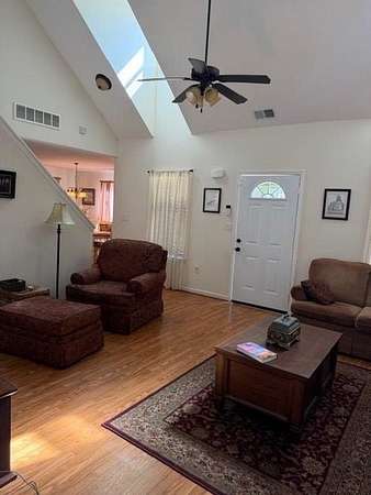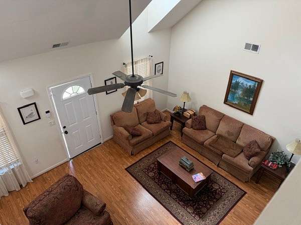 - Blinds, Cathedral Ceiling, Ceiling Fan(s), Drapes, Furnishings, Walk-In Closet(s)