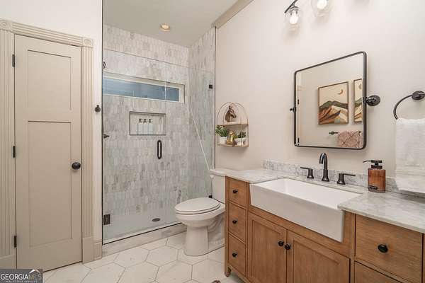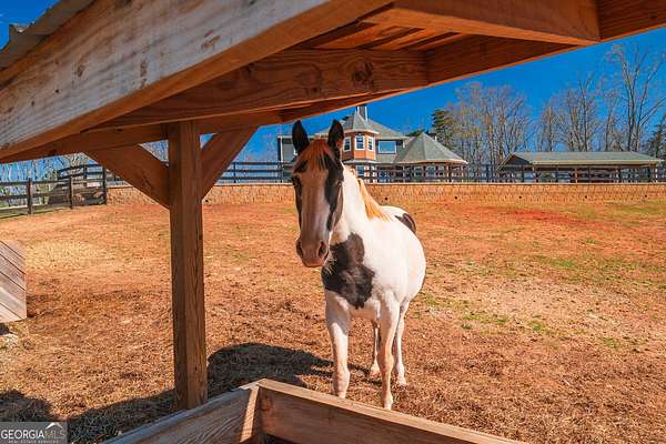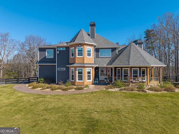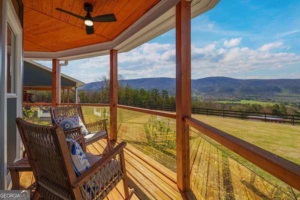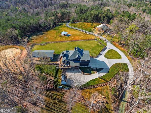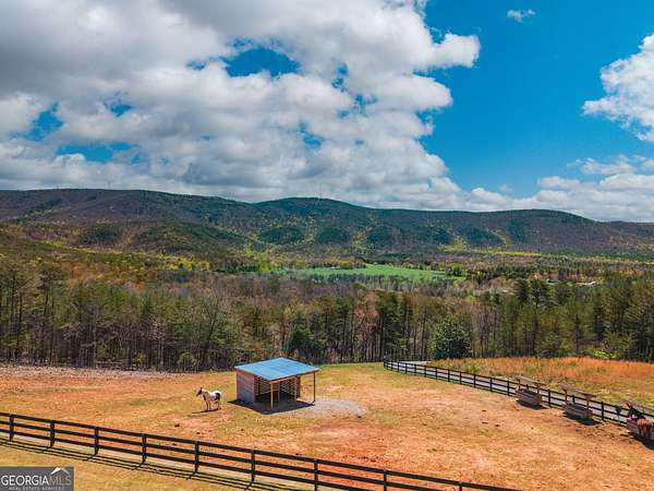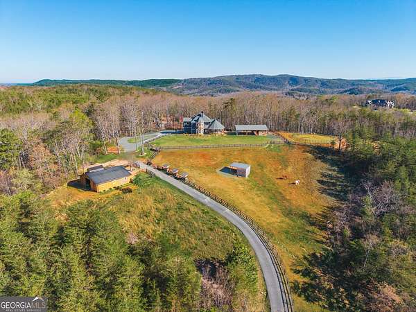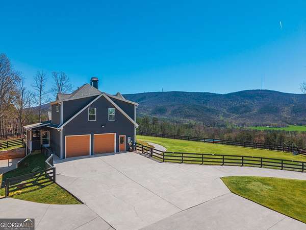A TEN MILLION DOLLAR VIEW... for a fraction of the price! Experience the perfect blend of refined luxury and peaceful country living in this fully remodeled equestrian estate. Nestled on 16 sprawling acres, this exceptional property showcases sweeping mountain views, complete privacy, and thoughtfully designed spaces. Where Victorian flare meets modern farmhouse, this majestic executive home welcomes you with warm hardwood floors and a grand two-story foyer that is capped with a picture frame worthy, plate glass window, offering towering panoramic views of the Bear and Pine Log mountains. This home features a designer's touch and high-end upgrades throughout. The chef's kitchen is a true centerpiece, outfitted with premium appliances including a Wolf range, built-in Miele coffee system, and custom finishes like automatic toe-kick lighting, natural stone counter tops and a massive center island big enough for your entire party to gather around. The work-at-home executive can kick back in their private office and take in the inspiring view, while the rest of the crew enjoys a large open great room with a cozy fireplace on the main level, or retreat upstairs to a comfortable primary suite with sitting room, more grand views, and a country ensuite that the best spas in Georgia would be envious of. Upstairs there are also two adorable secondary rooms joined by a large, cleaver jack-n-jill bathroom with HUGE walk-in shower. On the terrace lever find even more space to work, play or relax in with two additional bedrooms and a very well-appointed in-law suite with full kitchen, private bath and separate laundry. Recent improvements include all NEW windows, NEW roof, NEW gutters, NEW HVAC systems (main and terrace level), NEW tankless water heater, NEW whole-home generator with automatic transfer switch, NEW water softener system, and recently added high-speed internet. Step outside to a professionally landscaped grounds, complete with an automated irrigation system and a spacious outdoor pavilion-ideal for entertaining or simply taking in the serene surroundings. Equestrian enthusiasts will appreciate the fully fenced upper and middle pastures, and a lower area ready for you to finish to make a third. All this plus a 5-stall barn with its own ack room, hot water, and helpful power generator. Additional amenities include a 2-stall barn, two storage sheds, and a charming chicken coop. All of this is protected by an automated gated entrance and an advanced video security system, offering both convenience and peace of mind. For those seeking even more space, an additional 45 adjacent acres are available for purchase. This is a rare opportunity to own a turnkey equestrian estate where luxury, functionality, and natural beauty come together seamlessly at an amazing price.
