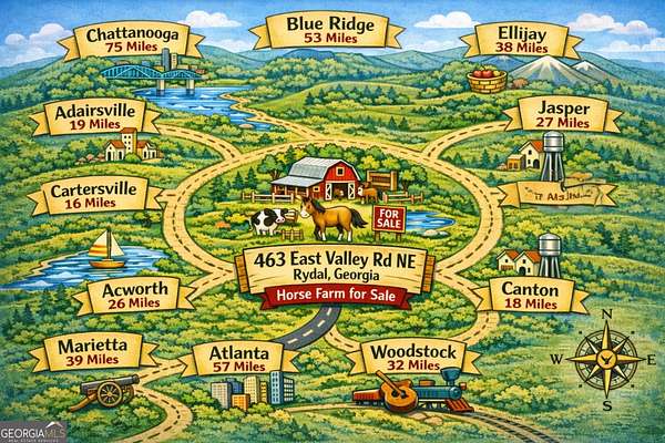 From Canton take 140 North towards Waleska. Turn left onto E. Valley Road. Property is on the right.